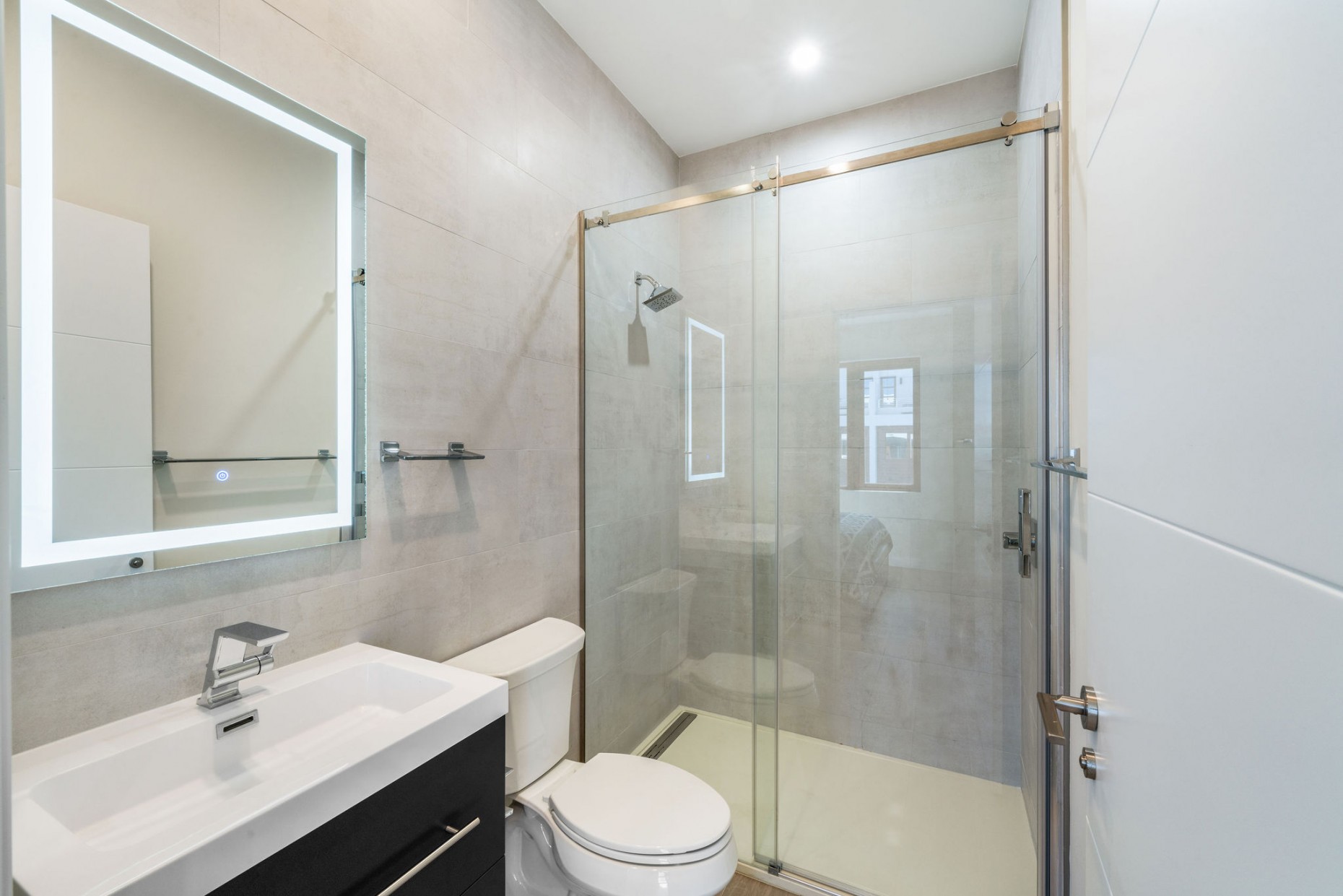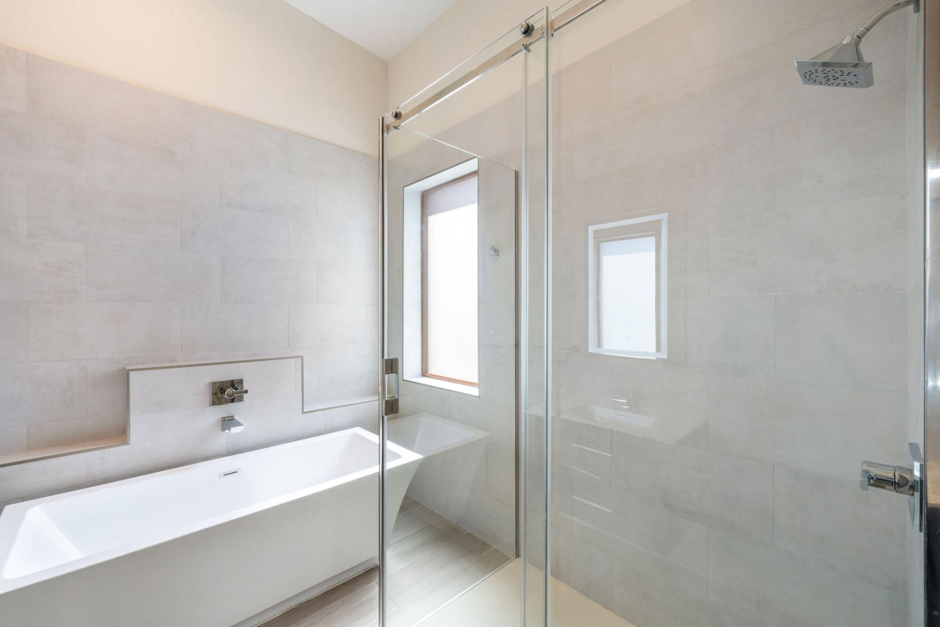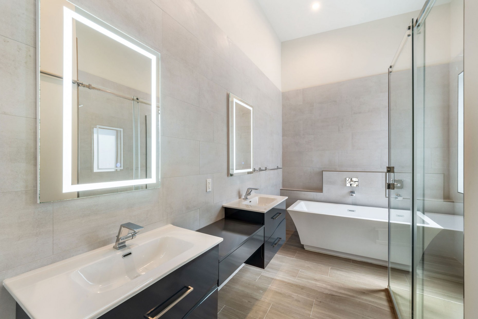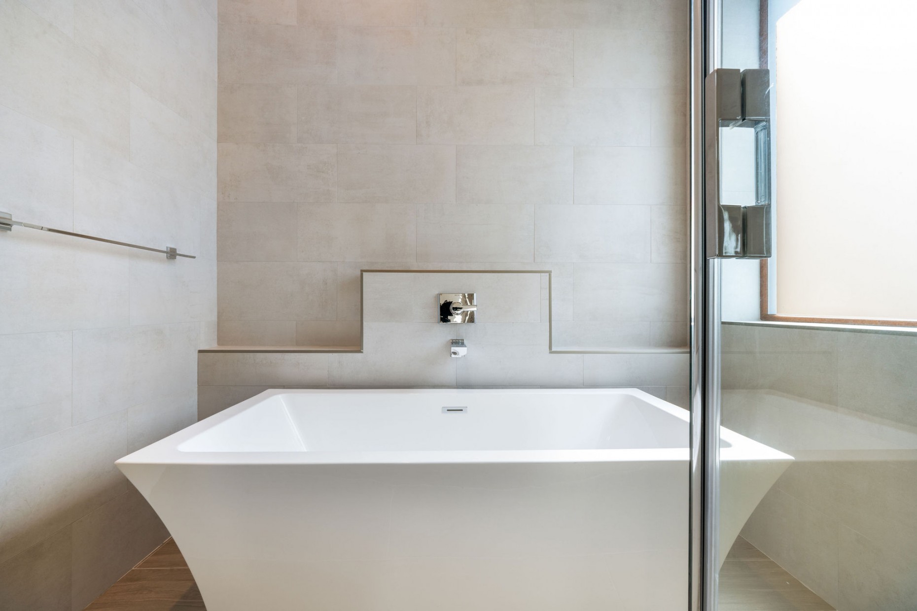 The master bedroom suite is on the top floor, with twin walk-ins, voluminous cielings and a free-standing tub, double shower and twin basins in the bathroom. There is also the 4th bedroom which could also be a work from home study.