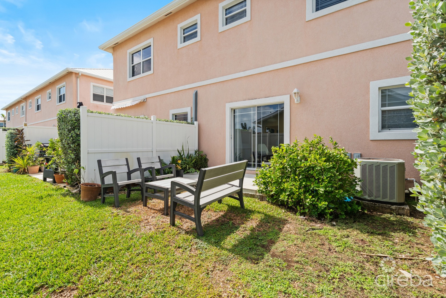 Located in the family-friendly Southern Skies community in South Sound, this spacious 2-bedroom, 2.5-bath townhouse offers comfortable island living in a prime residential location. The ground floor features a bright, open-plan layout with a functional kitchen, breakfast bar seating, and seamless flow into the dining and living areas—ideal for everyday living and entertaining. Sliding doors lead out to a private garden-view patio, providing a peaceful outdoor space to relax and unwind. Upstairs, both bedrooms are generously sized and include en-suite bathrooms, offering privacy and flexibility for owners, guests, or rental use. Neutral finishes, tiled floors throughout, and ample natural light create a clean, move-in-ready interior. Southern Skies is a pet-friendly complex with a swimming pool and on-site gym, conveniently located just minutes from the beach, George Town, schools, and amenities along South Sound Road. An excellent option for first-time buyers, professionals, or investors seeking a well-priced townhouse in a central, well-established community.