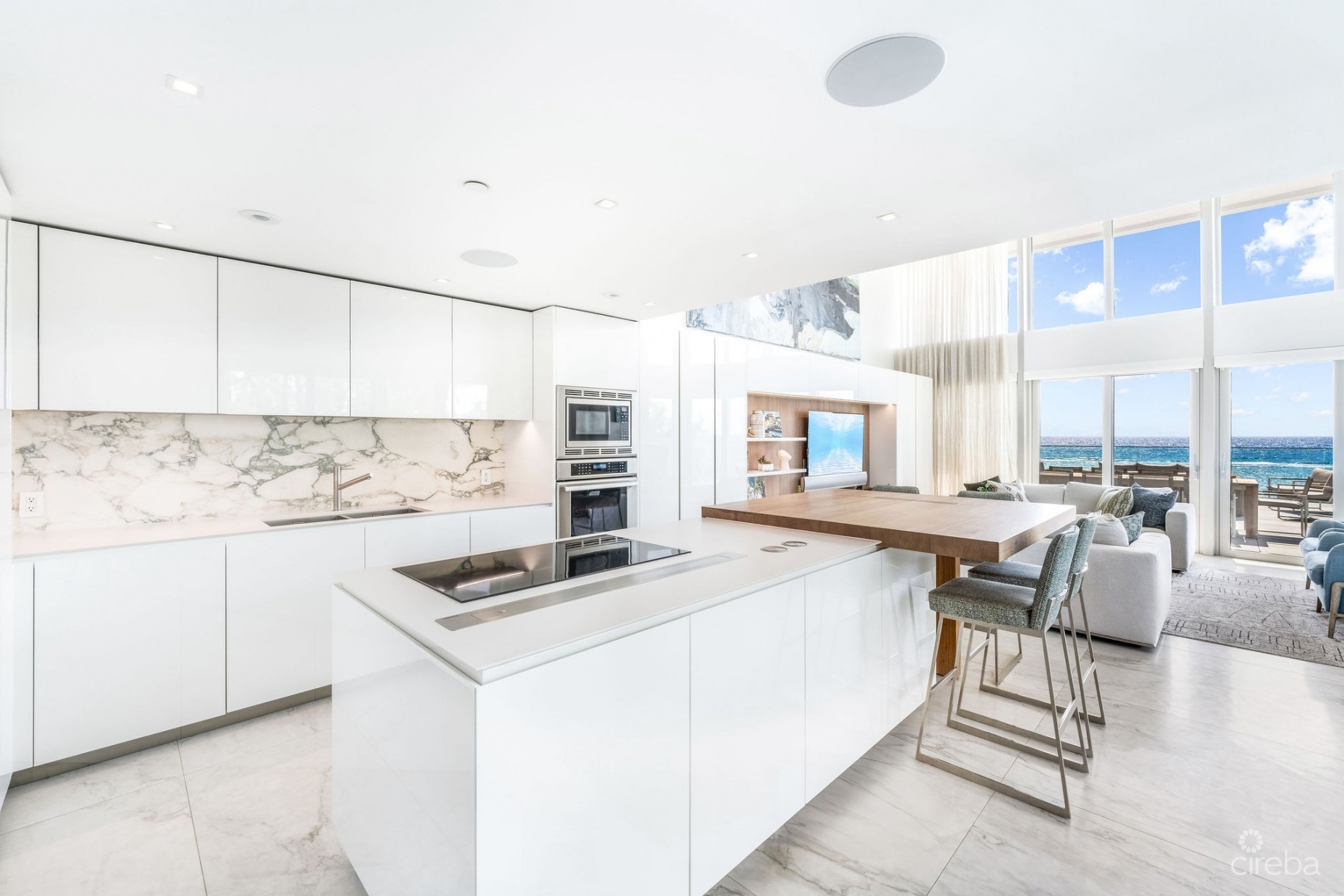 Discover Tides Residence 308, a beautifully appointed two-story condominium offering three bedrooms and three-and-a-half bathrooms in the sought-after South Sound community. Positioned on an upper level with coveted west-facing exposure, this exceptional home captures sweeping Caribbean Sea views and unforgettable sunsets from nearly every room. The interior has been thoughtfully designed to blend contemporary style with effortless comfort. Expansive double-height windows invite abundant natural light, highlighting the bespoke finishes, custom millwork and carefully curated lighting throughout. The open living and dining spaces create a welcoming setting for both everyday living and entertaining, flowing naturally onto a generous private terrace, perfect for evening cocktails, outdoor dining or simply taking in the horizon. Designed for modern convenience, the residence features an integrated smart-home system that puts lighting, climate, security and entertainment at your fingertips. The chef-inspired kitchen is both elegant and functional, complete with premium stainless-steel appliances, sleek cabinetry and a large island with casual seating that serves as the social heart of the home. The primary suite offers a tranquil escape with panoramic ocean views, a beautifully finished ensuite bathroom, a spacious walk-in closet, and a relaxed lounge area. Two additional bedrooms, each with their own ensuite baths and walk-in closets, provide comfort and privacy for family or guests. Owners at Tides benefit from an impressive collection of amenities, including a resort-style swimming pool, fully equipped fitness center, rooftop entertainment area, and direct access to the beach. Set in one of Grand Cayman’s most desirable neighborhoods, the property is moments from outstanding restaurants, boutique shopping, and the island’s vibrant lifestyle. More than just a residence, Tides 308 offers a refined way of living in an iconic setting. Arrange your private viewing and experience island luxury at its finest.