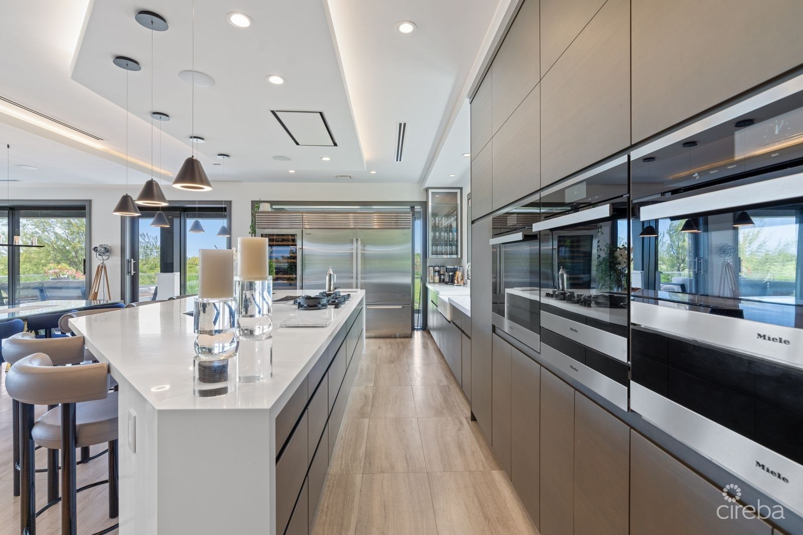 Offering the privacy of a villa with the benefits of resort-style living, Deckhouse 9 is a rare canal-front retreat located within the exclusive Ritz-Carlton, Grand Cayman community. This secluded five-bedroom, six-and-a-half-bathroom residence combines refined architecture, expansive interiors, and direct access to world-class amenities—all in one of the Caribbean’s most prestigious enclaves. Set on over half an acre with 8,775 square feet of total living space, the home spans three levels and includes a detached guest suite above a double garage. The top floor is dedicated entirely to the master suite, complete with a walk-in dressing room, private study, and spa-inspired bathroom with LED-lit soaking tub and glass-enclosed shower. Four additional guest bedrooms—each with an ensuite bath—are thoughtfully positioned for privacy, two of which open directly to the pool terrace. The chef’s kitchen is fully outfitted with Miele appliances, Sub-Zero refrigeration, and an integrated wine room. Multiple indoor and outdoor living areas take in long canal views, while a private media room, custom office, and Savant smart-home system offer modern convenience throughout. Outdoors, the villa features a 45-foot infinity-edge pool with a 30-foot glass wall, 16-person jacuzzi, fire pit, and full-length private dock define the canal-facing exterior. Landscaping by Vigoro creates a lush, serene backdrop, enhanced by fountains and carefully curated lighting. A vacuum elevator, 24KW rooftop solar array, rainwater cistern, German-engineered feature staircase, and full security system complete the home’s thoughtful amenities. As part of the Ritz-Carlton, Grand Cayman, residents enjoy privileged access to the resort’s dining, spa, tennis, golf, and water sports—plus a personal golf cart for seamless access to it all. Deckhouse 9 is a private villa that offers the best of both worlds: the comfort of a standalone residence with the ease and elegance of five-star resort living.