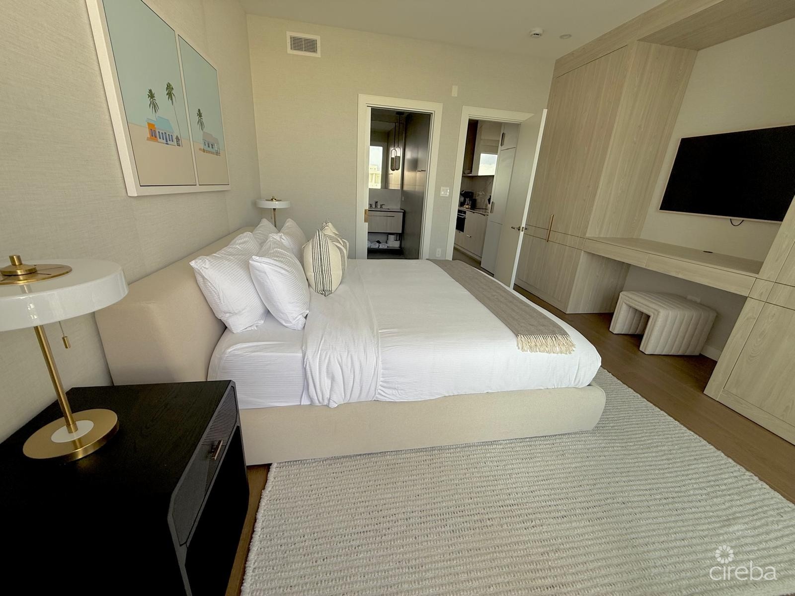 Located a few minutes walk from Seven Mile Beach, restaurants, shopping and entertainment, The Grove Too, is a mixed-use development, consisting of 68 apartments arranged around a serene, landscaped courtyard, rooftop pool and steam room and sauna, bar, food service and seating area. Experience refined island living in this beautifully appointed third floor, one-bedroom condominium. Designed for comfort and contemporary style, this elegant residence features an open-plan layout that seamlessly blends living, dining, and kitchen spaces. Additional conveniences include in-unit laundry, balcony, electronic locks, and assigned covered parking. Built to Miami-Dade hurricane standards, this reinforced concrete structure offers peace of mind with impact-rated doors and windows, energy-efficient air conditioning, and an elevated base level. Residents enjoy secure key-card access, elevators, and 24-hour manned security with CCTV monitoring. Offered within a serviced, very popular rental program, this property presents an attractive opportunity for both homeowners seeking a luxurious island retreat and investors looking to capitalize on one of the Caribbean’s most desirable destinations. A rare opportunity to own a sophisticated residence in the heart of Seven Mile Beach with many amenities right around it.