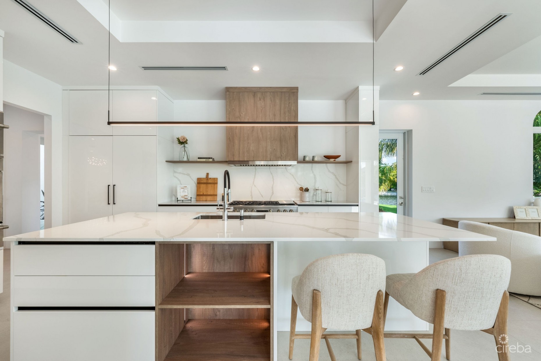 Ninety Five Bird Island | A Reimagined Waterfront Estate Set within the prestigious gated community of Vista del Mar, Ninety Five Bird Island is a comprehensively reimagined canal-front residence offering privacy, scale, and refined modern living just moments from Seven Mile Beach. The home has recently undergone an extensive multi-million-dollar renovation, resulting in a turnkey waterfront estate finished to an exceptional standard throughout. The thoughtfully refreshed interiors showcase custom Italian joinery, a professional-grade kitchen, designer lighting, large-format porcelain flooring, and seamless indoor–outdoor living spaces designed for both everyday comfort and elegant entertaining. Outdoor areas have been fully upgraded, including a renovated swimming pool, redesigned landscaping, updated exterior finishes, and generous canal-facing terraces. The property enjoys approximately 220 feet of canal frontage and includes a deeded 85’ x 25’ private dock with dedicated water and electric—a highly sought-after feature within Vista del Mar, where no new marina slips are available. Direct access to the North Sound makes this home ideal for boating enthusiasts. A valuable additional feature is the self-contained two-bedroom apartment above the garage, approximately 1,200 sq ft, with its own private entrance and patio—ideal for guests, extended family, staff accommodation, or a private office suite. Positioned at the end of Bird Island Drive, the home benefits from enhanced privacy with no through traffic, offering one of the most secluded settings within this exclusive waterfront community. Vista del Mar is renowned for its security, established infrastructure, and proximity to Seven Mile Beach, world-class dining, and island amenities. This is a rare opportunity to acquire a fully renovated, turnkey waterfront estate combining privacy, boating infrastructure, and refined modern living in one of Grand Cayman’s most desirable residential enclaves.